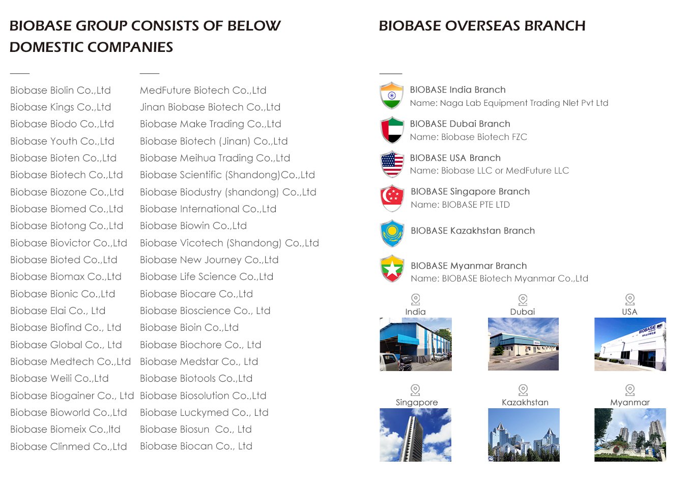 With more than 3,000 employees, 25+ factories, BIOBASE has established overseas branches in USA, UAE, Singapore, Kazakhstan, India and other countries. Ansenta has long-term business partners in 190+ countries.