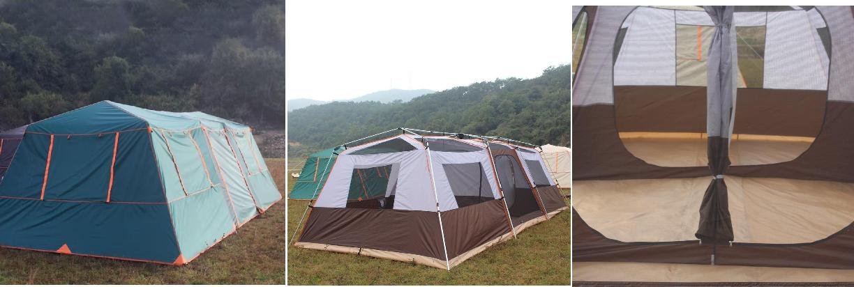 | Material | Outer tent: 210D silver-coated Oxford cloth, 3000mm water pressure test Inner tent: 210D Oxford cloth, 1500mm PU water pressure test Bottom fabric: 130g PE cloth, 8000mm water pressure test Tent poles: 6 x 19mm iron pipes + 2 x 16mm iron pipes + 3 x 11mm fiber poles |