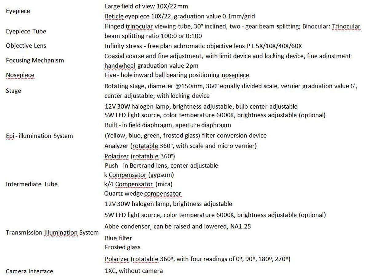 Polarizing biological microscope is a kind of microscope which uses the polarization property of light to study and identify birefringent substances. By converting ordinary light into polarized light for observation, it is able to clearly distinguish between monorefractive(isotropic) and birefringent(anisotropic) substances. Polarizing microscope is widely used in geology, minerals, metallurgy, chemical industry, semiconductor industry and many other fields .