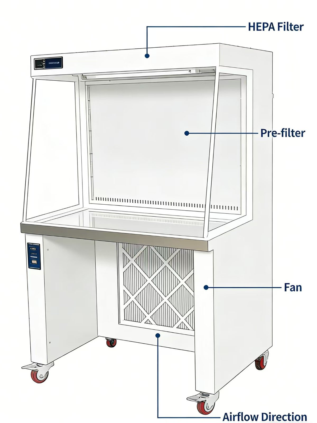 The horizontal flow clean bench is a local clean device designed based on the principle of horizontal unidirectional air – flow organization. It purifies the incoming air through a high – efficiency air filter, creating a horizontal clean air – flow barrier from one side of the operation area to the other. This can not only effectively prevent the intrusion of external non – clean air into the operation area, but also quickly carry away the pollutants generated during the work process, thereby creating a controlled environment that meets specific cleanliness levels within the work area.